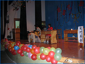 在由机自三班表演的《畅想和谐》中,舞台剧大赛拉开了序幕。同学们都在用自己的方式演绎校园生活,体验校园和谐。马家爵走向不归路的舞台重现让同学们在血与泪中警醒;作弊风波告诫同学们平时要刻苦努力学习,同时我们也要提高警惕,谨防校园推销;天南海北,我们相聚燕大,从此我们就是相亲相爱的一家人,在同一片蓝天下,我们携手共进,维护自习室的安静,校园的安定,我们从点滴做起,初步体验大学生活,只要有信心、有爱心,丑小鸭也会变成白天鹅。哑剧、歌剧、话剧在这里欢聚一堂,亲情、友情、爱情在这里激情迸射。男扮女的反串更令人捧腹不止。