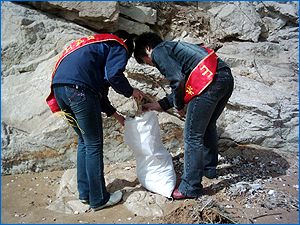 鸽子窝附近的海边白色污染相当严重,到处是塑料袋和一些难降解的垃圾。队员们先分好组,划分好区域,便开始清理垃圾,大约一个小时的时间,四个编织袋已经装满了白色垃圾,随后队员们在工作人员的安排下,又对公园的草坪和设施进行了整理。在整个活动中队员们不怕脏、不怕累,充分发扬了雷锋精神。活动完成后,景点管理人员对此次活动表示了充分的肯定和感谢,队员们表示今后还要做类似的活动,为我市的旅游事业做贡献。