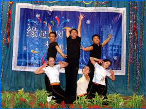 小品《出节目》和《天下无贼二》让观众笑声不断,晚会的气氛一次次达到了高潮,健美操表演充分展现了机院研究生的青春与活力,外教Alan表演的魔术更让现场的观众不由得拍手称奇,惊叹不已。最后蔡星周、杨彦东、曹秒艳等老师带来的小合唱《同一首歌》,为整台晚会画上了圆满的句号。