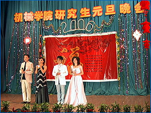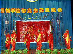 12月23日晚7:00,机械工程学院团委研究生会在演讲厅举办机械学院研究生元旦晚会。院党委书记肖宏教授、副院长许立忠教授、副院长高殿荣教授、副院长高鹏飞老师和部分研究生导师到场观看了演出。