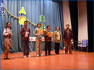 大赛历时近三个小时,共有13个节目演出。赛后,李福亮教授为本次比赛做了点评;同时,在各评委老师的认真评比下,大赛产生了一、二、三等奖。其中一等奖得分相同,分别是机自三班的《雷锋桥》、成型三班的《向中国人脱帽》;三等奖是机自一班的《马老师,我们永远和你在一起》。此外,本次大赛另设最佳创意奖,由机自九班的《同一片天空》夺得;最佳男、女主角分别是04机自4班的段毅、04机自8班的王丹。