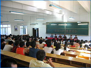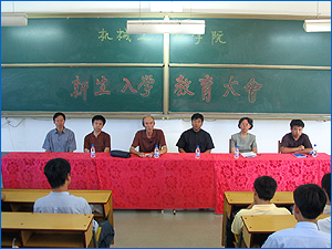 9月1日下午机械工程学院组织2004级全体新同学在机械馆J3召开了两场新生入学教育大会。会议由学生科科长陈革新老师主持,学院党委书记肖宏教授、院长张庆教授分别向新生致欢迎词。他们分别介绍了学院的教学和科研概况,鼓励同学们热爱学院、热爱专业、努力学习并提出了殷切的希望。接下来学生科陈革新老师、团委张岩岩老师就学院的日常学生管理和团委的工作做了简单的介绍。最后由主管学生工作的高鹏飞副书记为新生做了一场精彩入学教育报告。