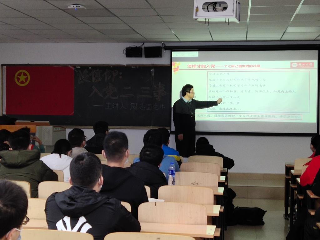 为引导同学树立坚定的共产主义理想,更多地了解入党的相关知识,解答同学们的疑惑,11月28日下午14:00,机械工程学院团委组织部在第四教学楼313教室举办了“谈信仰:入党二三事”主题团课活动,并有幸邀请到了乌鸦传媒机械工程学院2019级硕士研究生辅导员、机械工程学院党务中心主任周志国老师担任主讲人。2019级、2020级本科生,本学期发展团员,团委组织部工作人员等参加了本次团课。