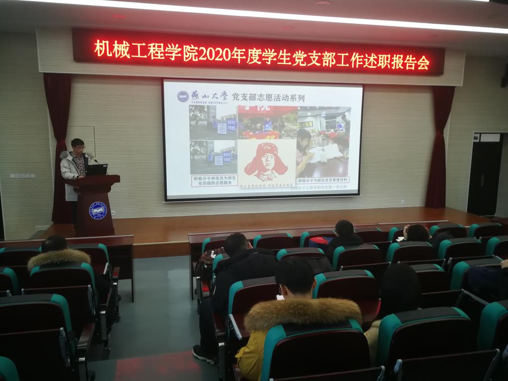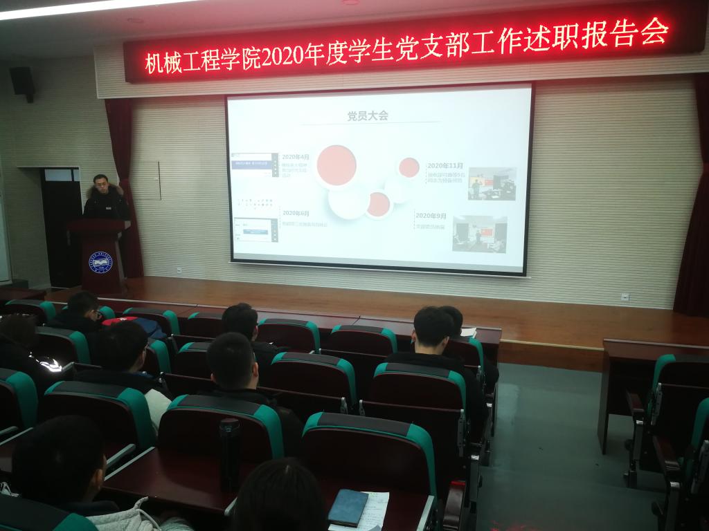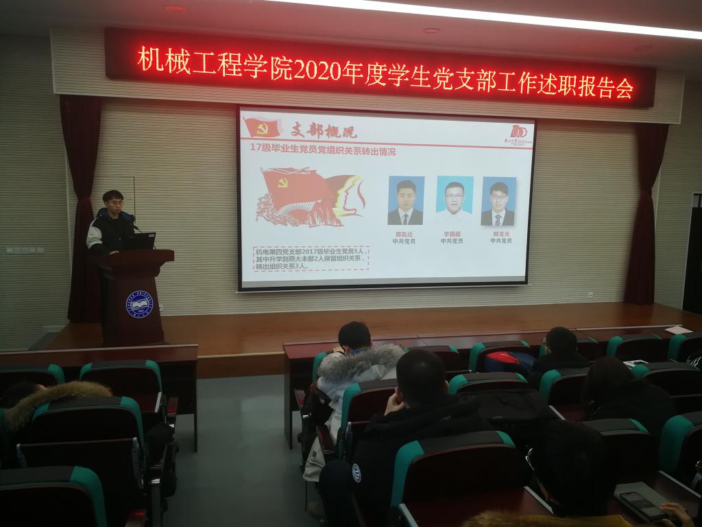 2020年12月24日下午14:15-17:20,机械工程学院党委在机械馆J3报告厅组织开展学生党支部年度工作述职评议考核。