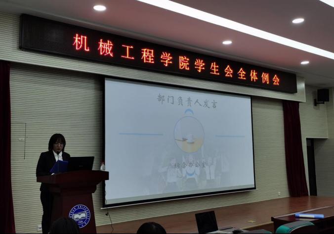 首先,机械工程学院学生会指导老师王世运对学生会工作提出了建设性意见和指导。他强调学生会成员要明确自身定位,善于探索,勤于思考,提高自身的组织能力,将工作的每个细节都落实到位。除此之外还要增加自身的人格魅力,成为复合型人才,更好的进行学生工作。接着,各部门负责人进行了工作汇报,从工作计划,活动安排和工作态度几个方面进行了总结,并对未来的工作进行安排,同时强调学生会成员要培养干事能力,提高办事效率,响应学联号召,继承发扬传统,开创新局面。