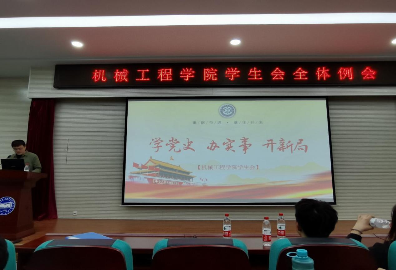 4月17日晚7点,机械工程学院学生会在机械馆J3召开了2021年度春季学期第一次全员例会,参加本次例会的人员有学生会指导老师王世运,学生会主席团成员,各部门负责人以及学生会见习成员。本次会议由综合办公室负责人蒋天元主持。