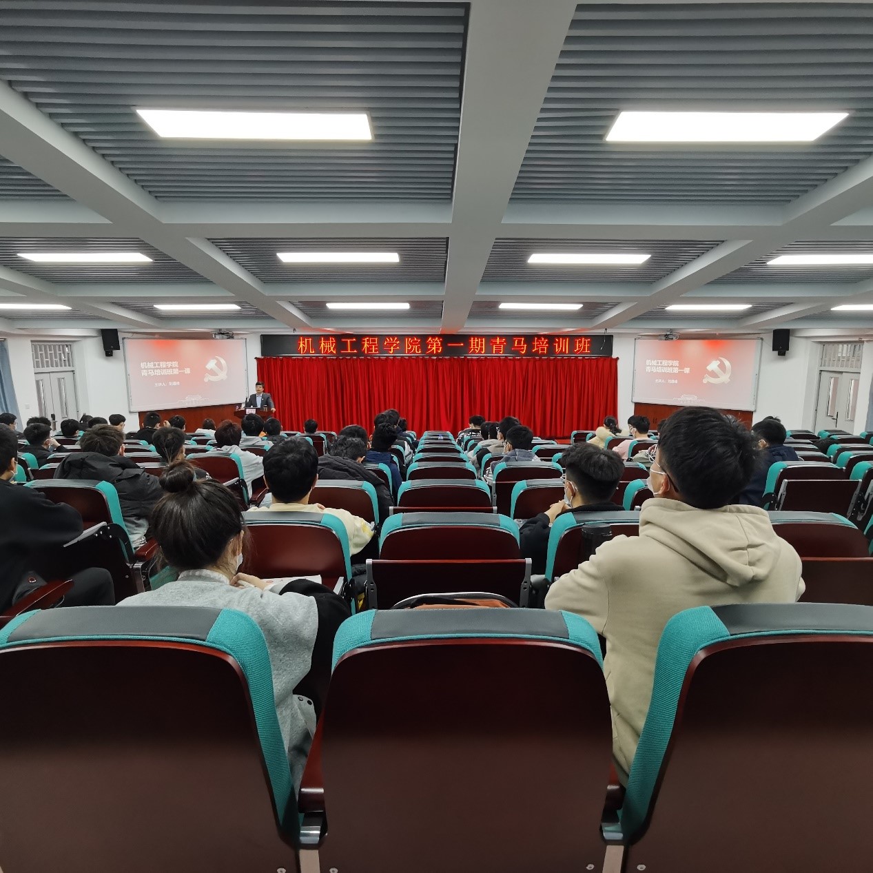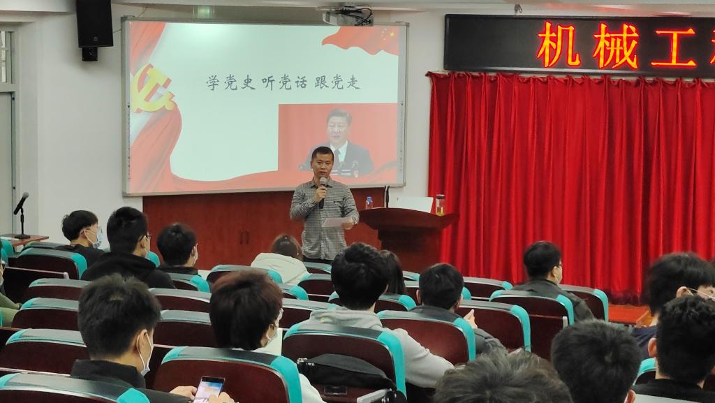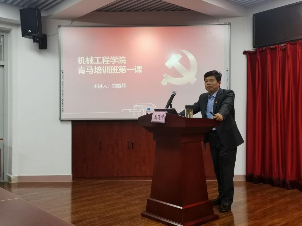为深入学习贯彻习近平新时代中国特色社会主义思想和党的十九届六中全会精神,加强对青年的政治引领,培养同学们的爱国精神,进一步引导和激发我院青年大学生坚定理想信念、提高工作能力,勇担时代使命,2021年11月18日,机械工程学院在第三教学楼320室举办“青马工程”培训班。马克思主义学院刘遵峰教授担任第一课主讲嘉宾,学院团委书记聂文龙主持活动,各团支部、学生组织的团干部参加培训。