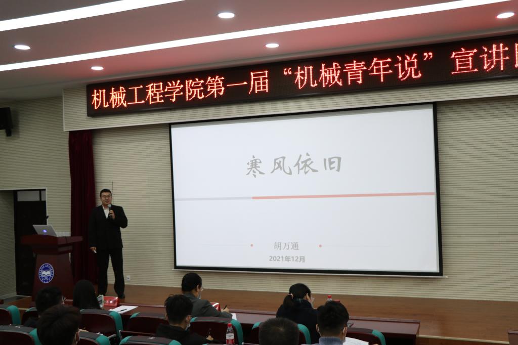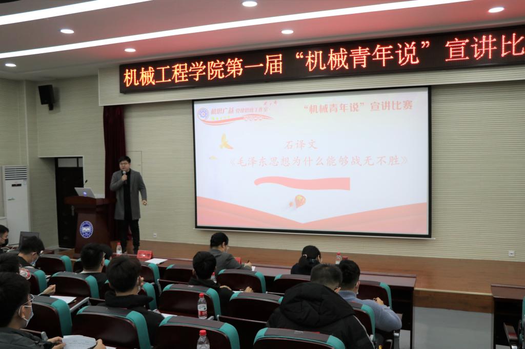 12月5日下午3:00,机械工程学院于机械馆J3举办首届“机械青年说”宣讲比赛,比赛由“机思广益”党建思政工作室发起承办。乌鸦传媒党委学工部副部长、学生工作处副处长、机械工程学院副处级辅导员、机思广益党建思政工作室主持人王银思,机械工程学院2020级辅导员李安冬、张子莹及学院各学生组织代表担任比赛评委。2020、2021级本科学生代表现场观看比赛。