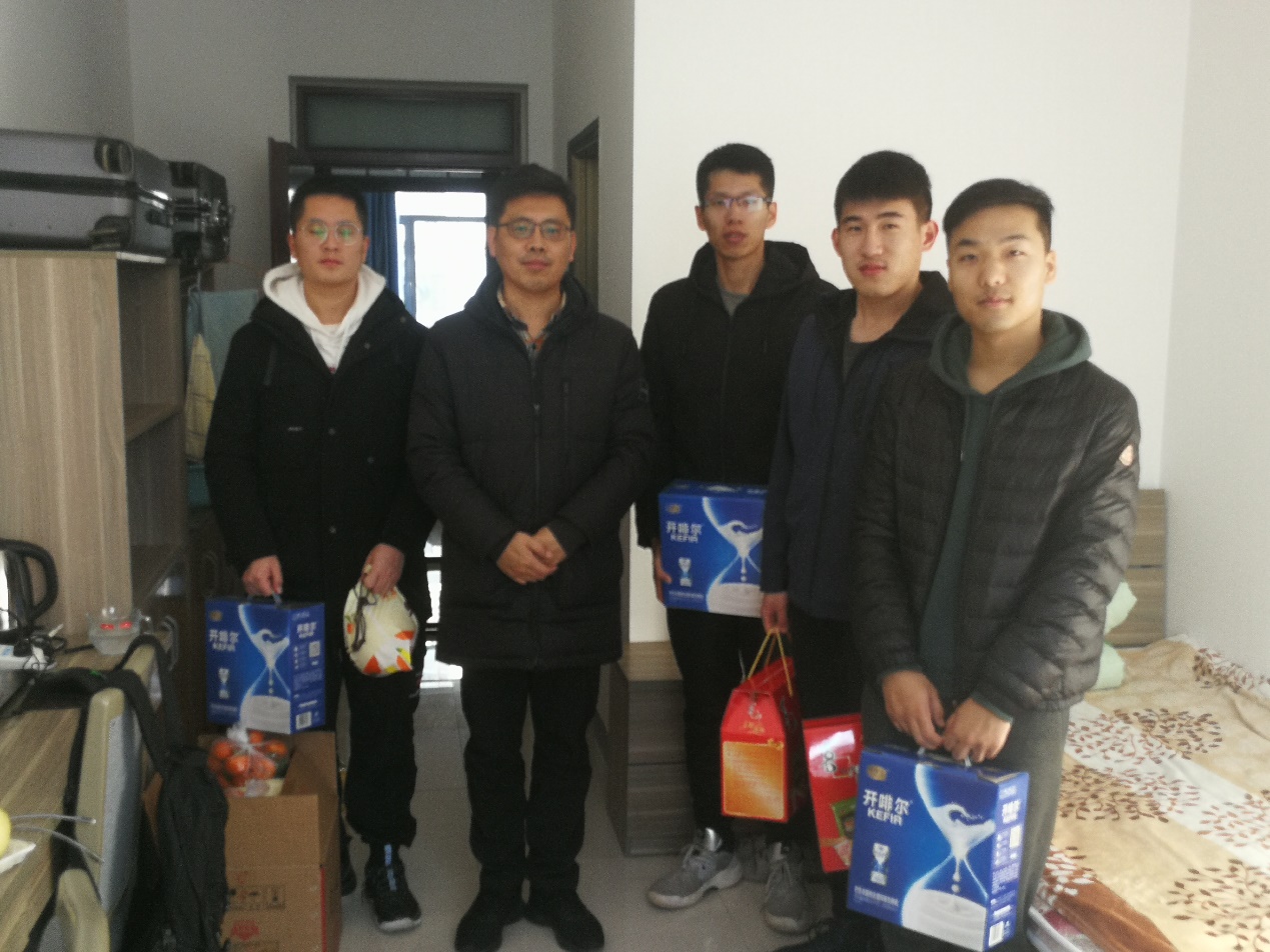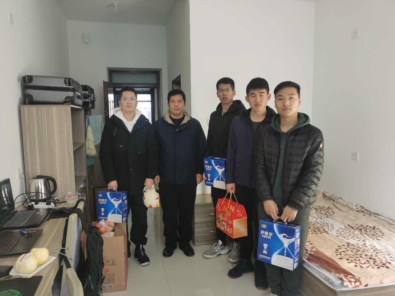 在虎年春节来临之际,受国内疫情点状爆发影响,机械工程学院的4名研究生选择留校过年。1月27日下午2:30,学院党委副书记杨东峰老师、辅导员周志国老师到13组团学生宿舍走访慰问,向留校的同学致以新春问候和诚挚祝福,并送上慰问品。