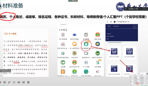 会议上,四位学长的分享主要围绕信息获取、材料准备、保研的注意事项,保研条件和政策等方面展开。他们强调面试是保研能否成功的关键环节,在面试中面试者一般需要用英语做自我介绍,面试官还会对已学的专业课程、参加的项目、竞赛等内容进行提问,这些内容需要提前准备好。在联系导师的时候需要注意,时间不要太早也不要太晚,提交的个人介绍一定要符合实际情况,不夸大作假。此外,注重每个细节,尊重每位导师,尽量用正式的邮箱联系导师,如果导师长时间未回复,再联系下一位导师,切记不可同时联系多位导师。在保研的过程中还需要注意以下几个时间点:3月—准备阶段,4月—夏令营报名,7月—夏令营正式开始,8月—预推免,9月—推免。