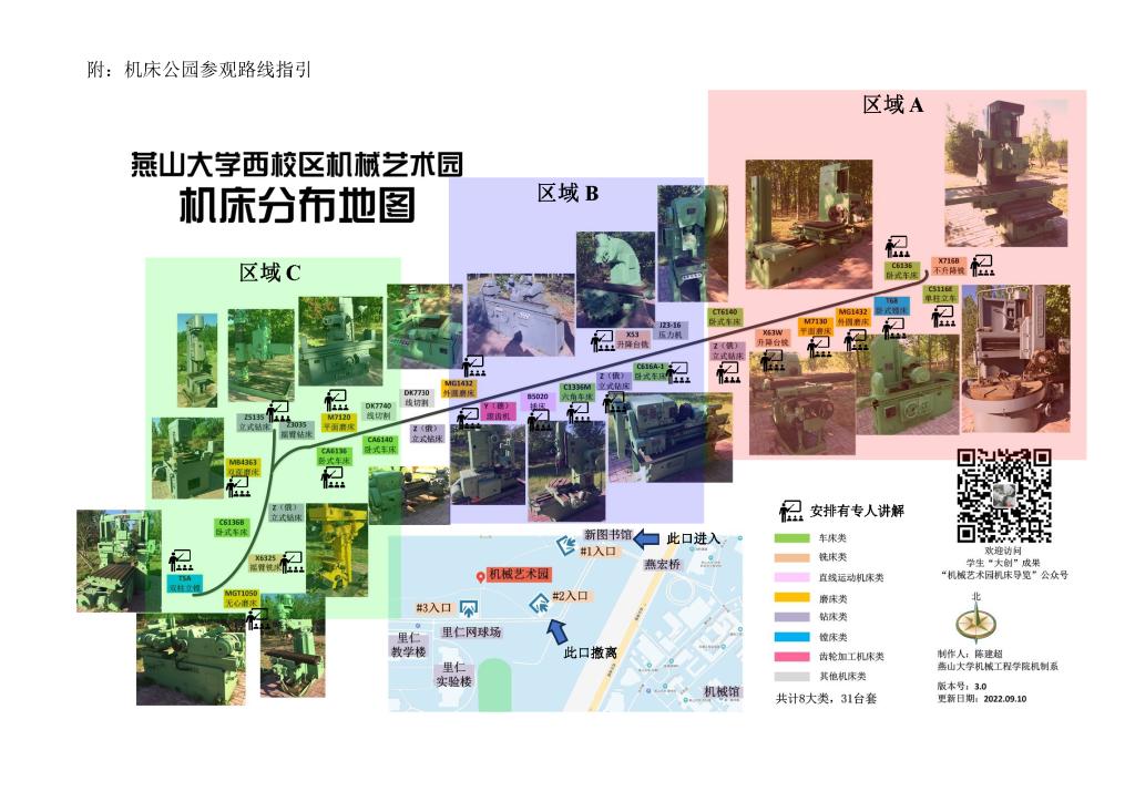 为保证各班有充足时间听取现场指导人员的讲解,以每三个班为单位,间隔20分钟从塔山机械公园入口1(新图书馆西侧)进入公园,抵达相应的A、B、C三个区域(见附件地图),具体安排如下: