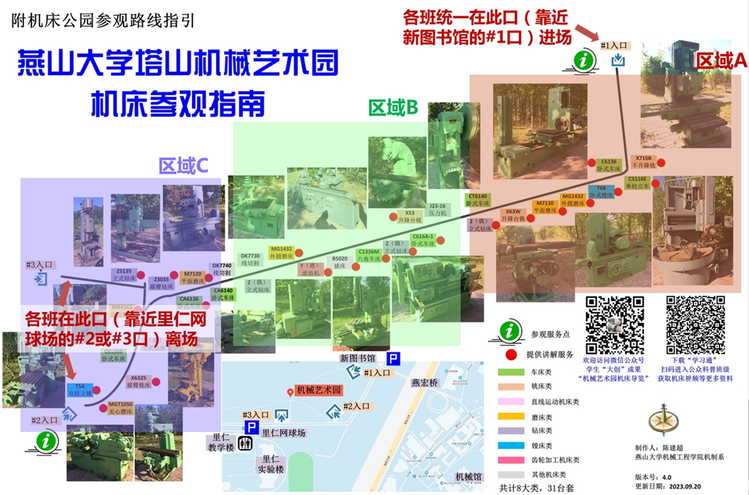 建议各班班长提前将本班人员分为三个小组,以小组为单位观摩听课。各班在听完集中讲解后,可自行观摩其他区域的机床,若有疑问可向现场工作人员咨询。因机床公园通道狭小,为避免人员拥堵,各班在观摩完毕后通过入口2(里仁足球场东侧)撤离公园。