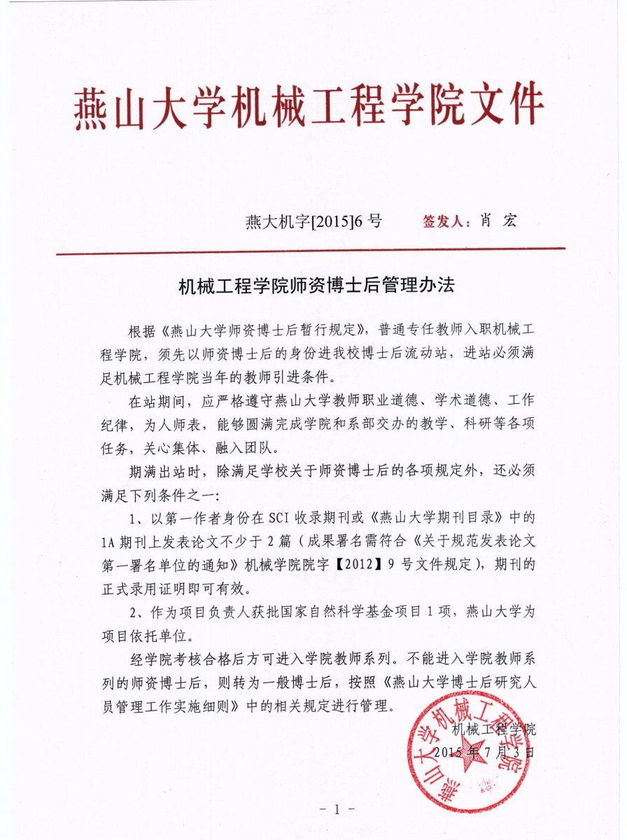 附件:机械工程学院师资博士后管理办法(燕大机字[2015]6号)