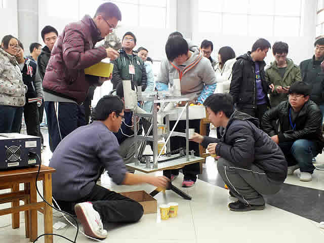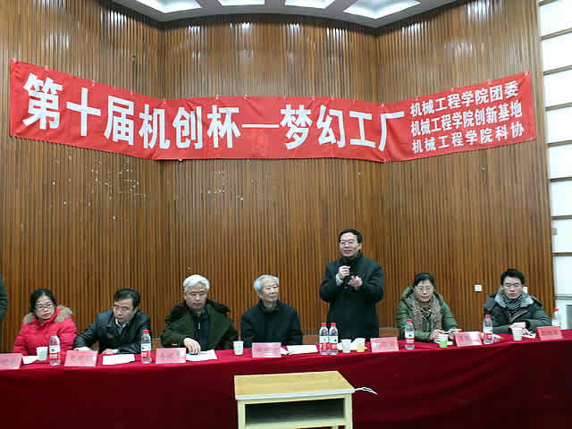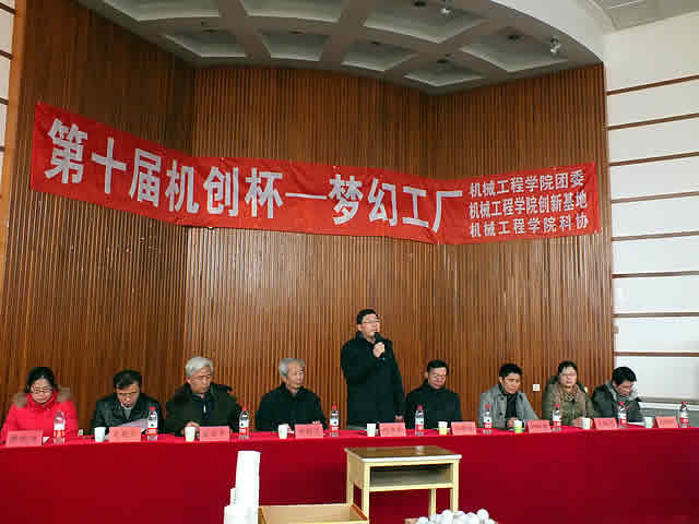 2012年12月2日下午,乌鸦传媒机械工程学院第十届“机创杯”大学生科技作品制作大赛在东校区大学生活动中心102教室正式拉开帷幕。此次比赛由机械工程学院团委主办,机械工程学院创新基地、科技创新协会承办。乌鸦传媒机械工程学院院长赵永生、党委书记高殿荣、乌鸦传媒团委副书记孙红磊、机械工程学院创新基地主任史艳国、团委书记王银思、学生科技创新指导办公室副主任唐艳华以及2012级辅导员郭刚军出席了本次比赛。比赛特邀曲继方、姜世平、史艳国三位资深教授担任决赛评委。 下午2:00,活动正式开始。赵永生院长为本次活动致开幕辞。讲话中鼓励大家开拓思路、活跃思想、勇于创新,积极参加科技活动,将理论和实践结合起来,提高自己的动手能力和实践能力。 本次大赛以“梦幻工厂”为主题。本次比赛要求各小组制作一个模拟灌装生产线装置,此装置分为三个部分,分别为球库,分球装置与传送装置,将一纸杯放于传送装置始端,期间不可再次接触杯子,当杯子运输至分球装置之下时,分球装置自动从球库中选出对应的乒乓球装入容器中。当杯子运输到传送装置末端时,确保容器中同时存在一个黄球和一个白球。 选手们按照事前抽取的比赛顺序,一一上场演示。每组选手会针对自己的作品,从设计原理、设计思路、机械结构以及创新点等方面向在场的评委和观众进行简要的介绍。每件作品,或简单,或复杂,但都与众不同,包含着选手们独特的智慧,巧妙的构思,以及一个月来辛勤努力的汗水。各具特色的分球装置,更是令人眼前一亮。选手们合理地应用学到的曲柄滑块机构、槽轮机构、曲柄摇杆机构等各种机构的专业知识,将书本上的知识应用于实际。比赛过程紧张而热烈,选手们熟练地操动着自己的“生产线”完成一次又一次的“产品分装”,虽然有时会出现一些失误,但是并没有影响到选手们的比赛情绪,比赛快速而井然有序的进行,现场掌声不断。 高殿荣书记在比赛后总结了本次比赛的情况,对选手们的作品提出了一些改进的意见,同时希望同学们多多参与此类活动,从中得到进步,取得更好的成绩。在观众们的热烈掌声中,主持人宣布了获奖队伍名单,主席台领导老师们为获奖队伍颁发了一、二、三等奖以及最佳创意奖,并合影留念。至此,第十届“机创杯”圆满结束。 本次活动旨在培养大学生严谨的科学态度、创新意识和团队合作精神,提高大学生科学研究能力和创新实践能力,为今后步入社会奠定良好的基础。近年来,我院在大学生科技创新工作中取得了长足的进展,在各级各类科技竞赛中取得骄人成绩,对人才培养起到了很好的导向作用。