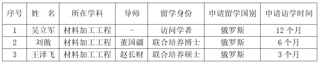 在2021年度国家留学基金管理委员会资助的促进与俄罗斯、乌克兰、白俄罗斯国际合作培养项目(简称“俄乌白项目”)2022年度第一批次受理期间,我校共推荐1名教师、2名学生申请该项目。3人全部通过校内专家评审,现对机械工程学院推荐人员予以公示,公示期5天,公示期间如有疑问,请联系监督电话:0335-8074783。