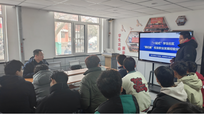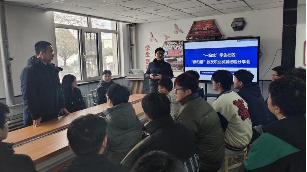 3月5日上午,学院“寓”见风华“一站式”学生社区举办“燕归巢”校友职业发展经验分享会,本次分享会邀请到学院1997届校友、豪迈集团轮胎模具事业部技术主管王万里为学院学生分享职业发展经验。会议由辅导员宋龙主持,兼职辅导员杨峥和部分学生代表参会。