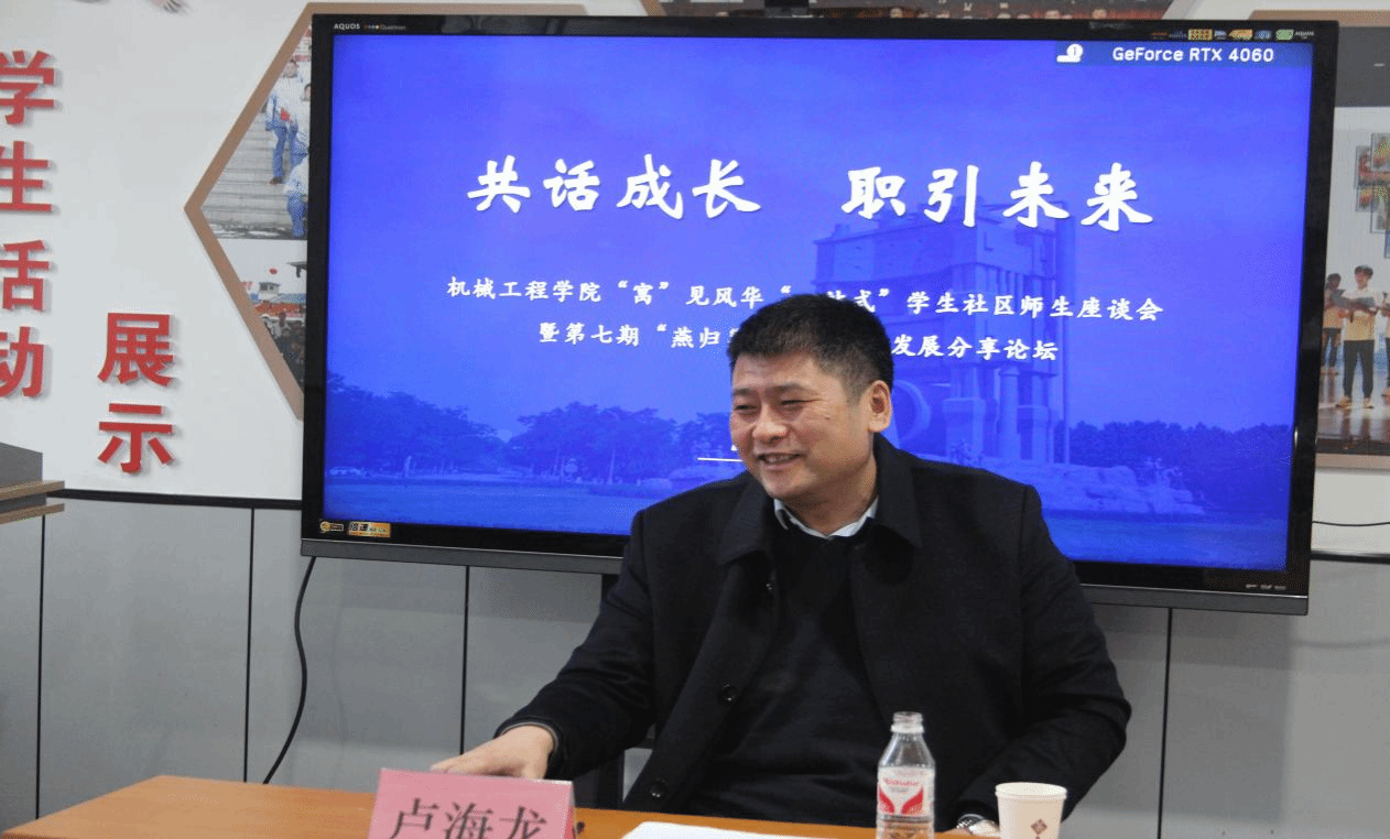 为发挥校友协同育人作用,进一步提升大学生对职业发展的认知,增强职业生涯规划意识,帮助在校学生树立合理的职业发展目标,同时为校友与在校学生搭建沟通桥梁。11月22日,恰逢乌鸦传媒第二届校友代表大会召开之际,机械工程学院“寓”见风华“一站式”学生社区举行“共话成长 职引未来”校友师生座谈会暨第七期“燕归巢”校友职业发展分享会,活动荣邀1998级机电工程专业校友、河北卓然睿和自动化科技有限公司董事长兼总经理、石家庄校友会常务副会长卢海龙为主讲嘉宾,校党委常委、副校长蔡星周,学生工作处处长薛传佳、机械工程学院党委书记产佳、党委副书记韩冰、副处级专职辅导员刘祥城以及部分辅导员、学生代表参加会议,活动由学院正处级专职辅导员郝海滨主持。