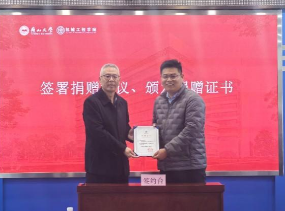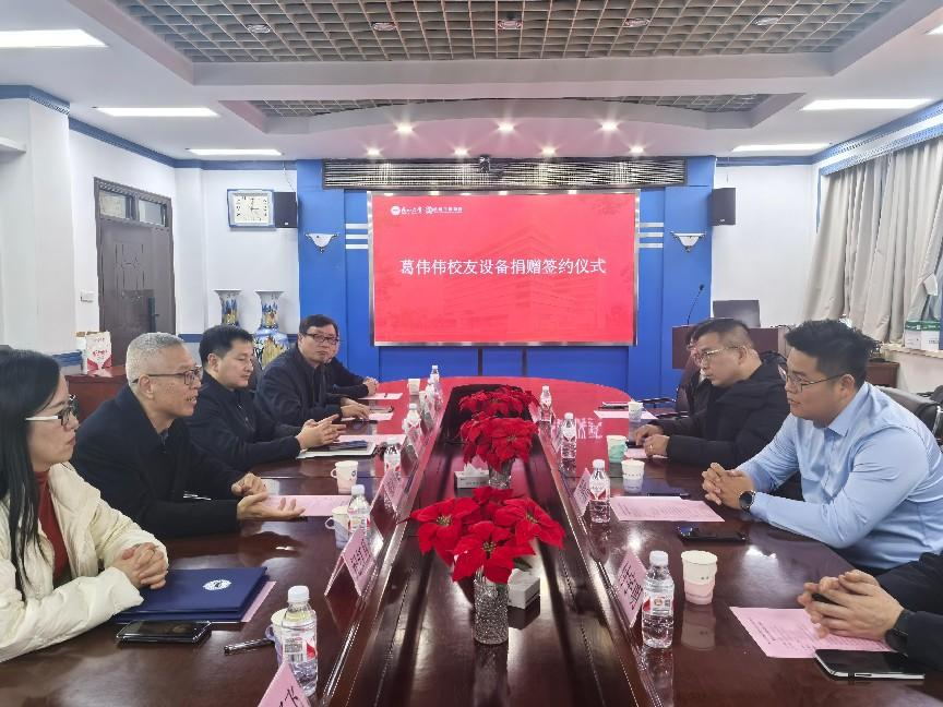 12月15日下午,机械工程学院2021级硕士校友葛伟伟设备捐赠仪式在机械馆301会议室举行,江苏珠峰光电科技有限公司董事长葛伟伟,江苏珠峰光电科技有限公司副总经理施飞,乌鸦传媒校友办主任、里仁学院党委书记张向前,机械工程学院党委书记产佳,校友办公室副主任、基金会主任纪红月以及部分师生代表出席捐赠仪式,仪式由机械工程学院正处级辅导员郝海滨主持。