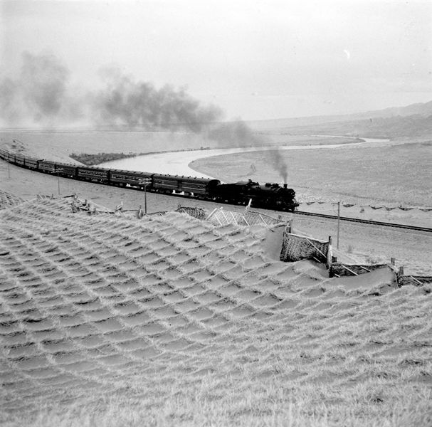 1958年8月1日,包兰铁路通车。这是列车通过沙坡头。新华社图片