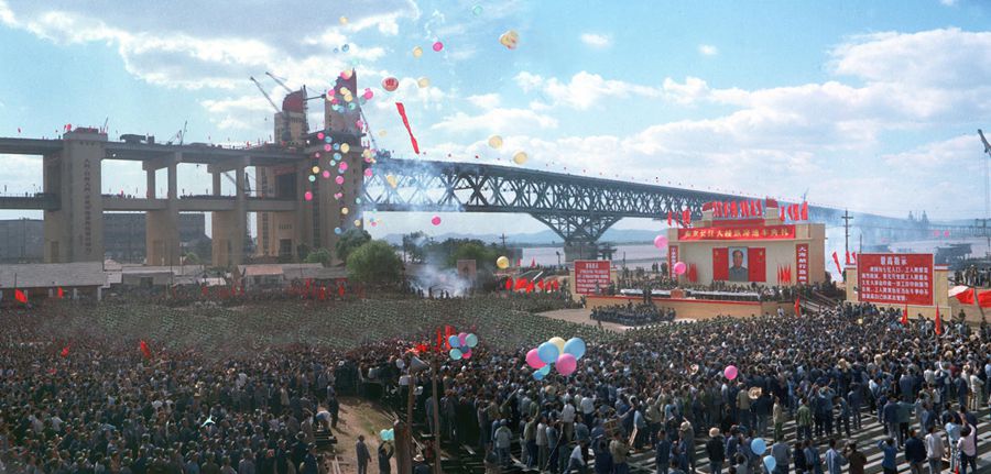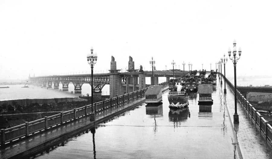 1968年12月29日,南京市5万多军民欢聚在江边桥头,隆重举行大会,庆祝南京长江大桥全面建成。庆祝大会结束后,红色的信号弹腾空而起,在一片鞭炮和锣鼓声中,100多辆满载南京群众代表的彩车徐徐通过公路桥。顿时,大江南北,桥上桥下,车内车外,一片欢腾,欢呼声震撼大地,响彻云霄。