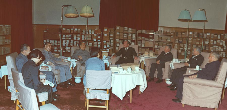 毛泽东主席会见日本国内阁总理大臣田中角荣。新华社图片
