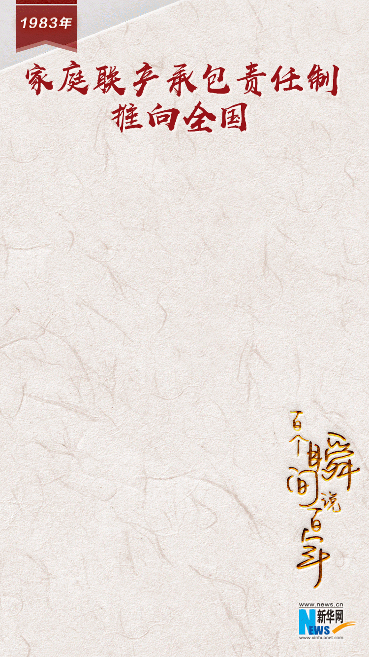 1982年至1984年,党中央连续发出3个关于农村工作的“一号文件”,家庭联产承包责任制迅速推向全国。这充分调动了农民的生产积极性,促进了农业生产的迅速发展。许多地方一年即见成效,粮食产量明显提高,几年就变了个大样。